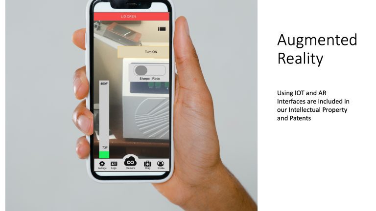 Touching medical waste is not fun and can be dangerous. Our technology allows the use of Augmented Reality (AR) interfaces to control the device in a safer and secured manner, hence reducing potential skin exposure to spills or the heat in general.